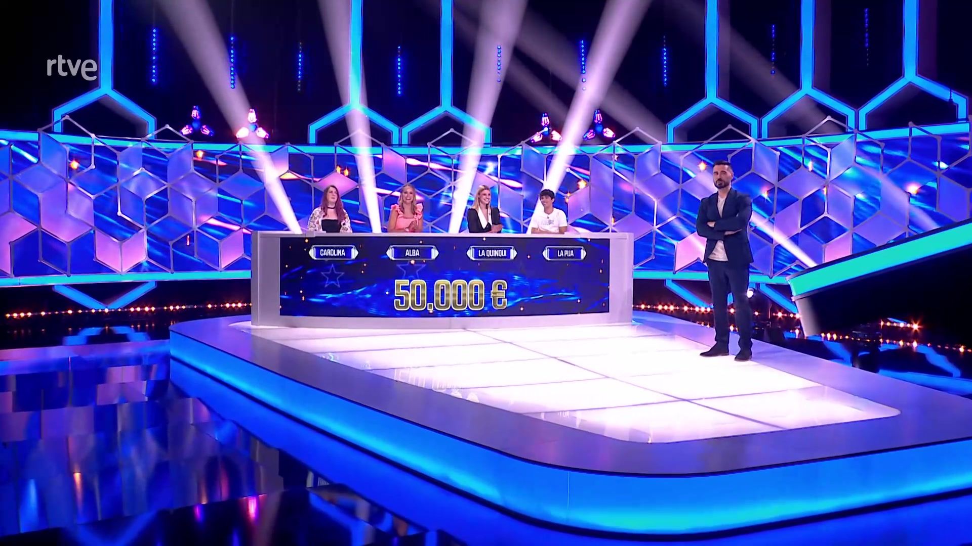 Cuatro concursantes famosos unen sus conocimientos para ganar al cazador, un auténtico profesional de los concursos televisivos.