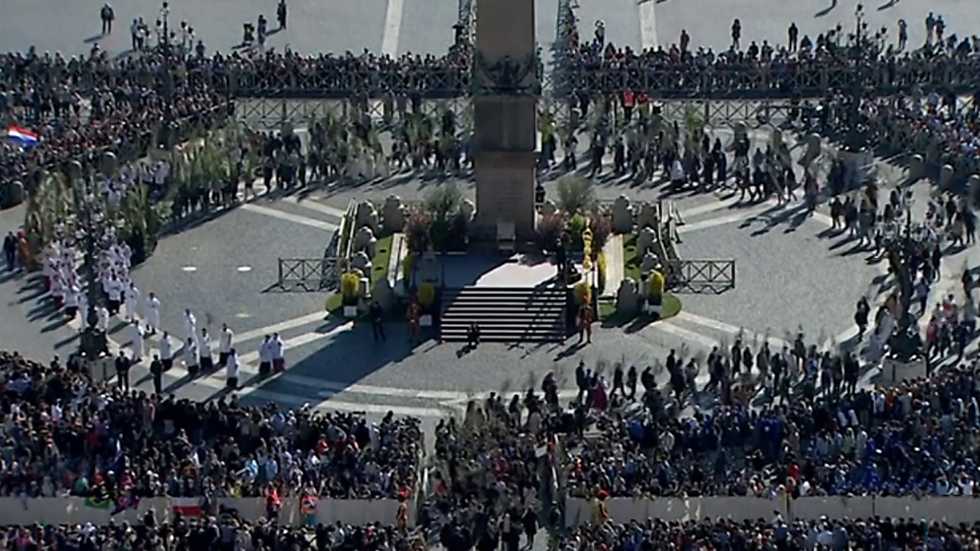 Retransmisión de la Santa Misa de culto católico del domingo de ramos desde la Plaza de San Pedro en Roma.