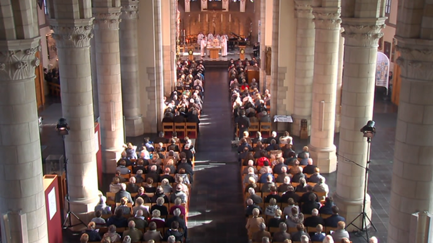 Santa misa católica desde la iglesia de San Nicolás en Diksmude, Bélgica.