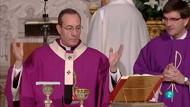 Trasmisión de la santa misa desde el santuario de Javier (Navarra), oficiada por el arzobispo de Pamplona y obispo de Tudela, monseñor D. Francisco...
