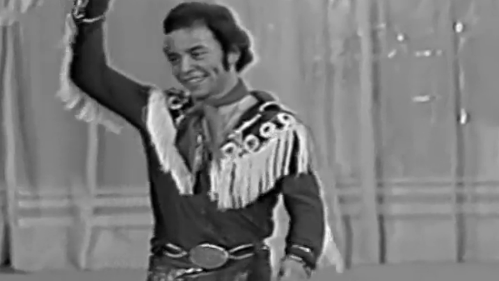 Bloque de grabación, no emitido, del 5 de febrero de 1977. Actuación del acróbata Alfred Billy realizando un espectáculo vaquero del oeste con soga...