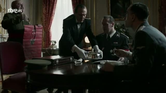 El alto mando de Franco encargado de agasajar a Nimmler en su visita a Madrid trata de explicarle con la ayuda de Ernesto -infiltrado- loi qué es...