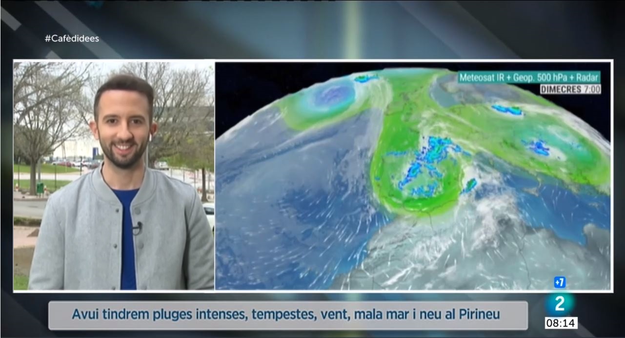 El temps a Catalunya aquest dimecres vindrà marcat per la nuvolositat abundant i els ruixats que aquest matí seran dispersos i més probables al nord-est i sud. A partir del migdia, els xàfecs s'estendran a qualsevol punt, seran intensos a les Terres de l'Ebre, Camp de Tarragona, costa central i comarques del nord-est. A l'extrem sud es poden superar els 100 litres i de matinada i fins demà al migdia, podrien caure més de 80 a l'Empordà. Tot plegat amb fort vent a la costa i zones elevades, mala mar i ambient més fresc. La diada de Sant Jordi podria venir marcada pels ruixats dispersos en alguns moments del dia i a molts indrets.