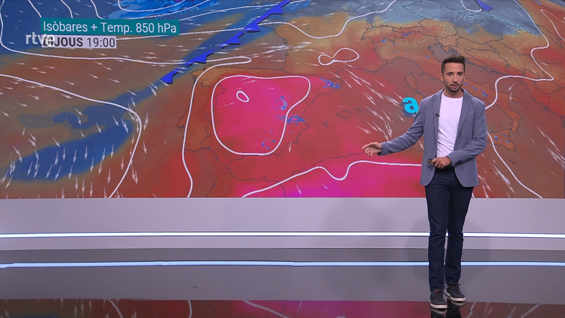 Demà, matí tranquil, amb sol, boires interiors i núvols baixos a la costa, sobretot del sud. I tarda de nuvolades, xàfecs i tempestes al Pirineu i Prepirineu Oriental, nord de la Catalunya Central i als Ports, on localment serán intenses i acompanyades de pedra i calamarsa. La matinada tornarà a ser molt càlida i xafogosa a la costa, tropical a l’interior i només fresca al Pirineu. I de dia, la calor es farà més intensa amb màximes de 33 a 37 ºC a l’interior. A la costa: més de 30 ºC i xafogor molt pessada.