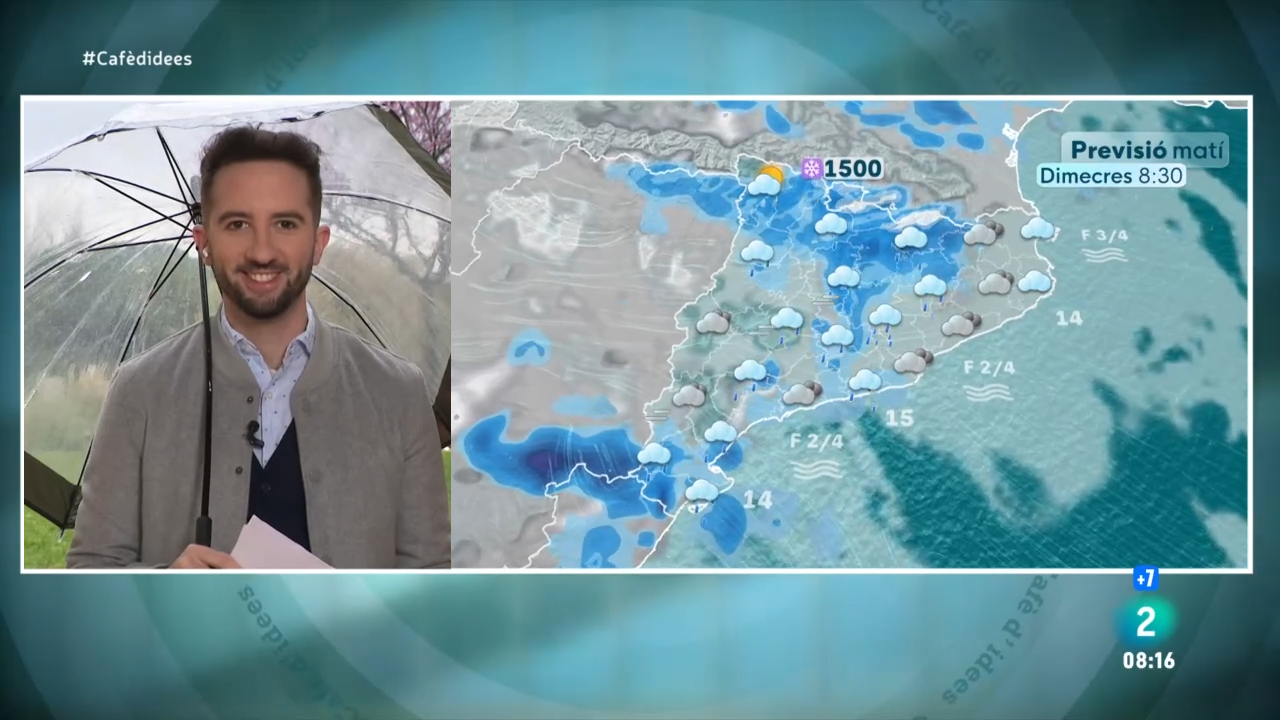 Dimecres de paraigua i jaqueta! Ruixats dispersos, nevades al Pirineu i temperatura més baixa. Variabilitat primaveral i més suavitat els pròxims dies