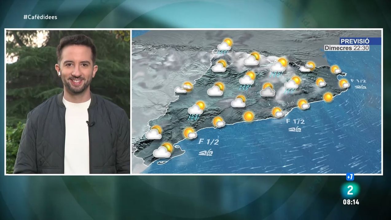 Dimecres de sol i núvols però amb ruixats en alguns punts. Temperatura entre els 19 i 24ºC arreu.