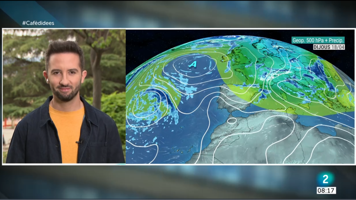 Albada sahariana i càlida com les mínimes d'aquest dilluns després d'un cap de setmana de calor de rècord. Més d'una quinzena d'observatoris viuen el dia d'abril més càlid des que hi ha registres. L'anticicló atlàntic farà entrar el vent del nord amb aire fred en altura afavorint alguns ruixats i tempestes fins el dijous. A més, la massa càlida s'allunyarà i entrarà una de més freda. A 1.500 m passarem dels 15 ºC als 2 ºC. Després d’un cap de setmana de calor excepcional, avui les temperatures comencen a baixar i reapareixen alguns ruixats. Ambient més fresc i més algunes tempestes els pròxims dies