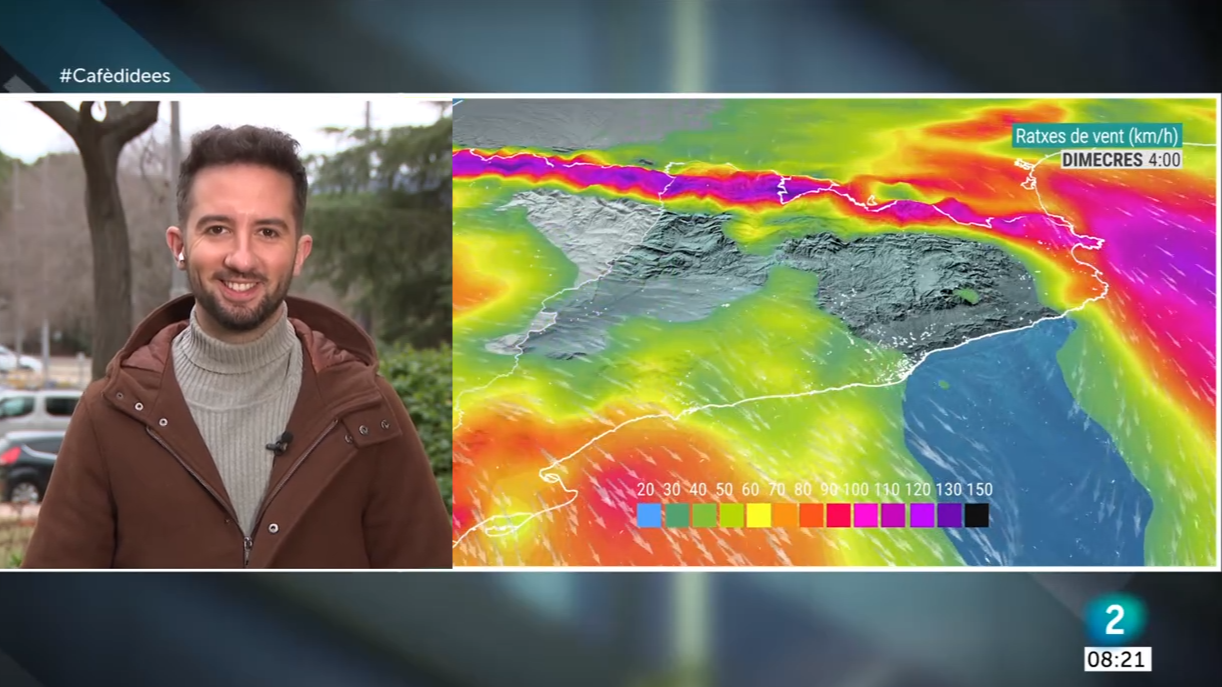 Nevada abundant a l'Alt Pirineu! Aquest matí ja ens apropem al metre de neu i en una setmana s'han acumulat entre 30 i 60 cm de neu nova. Al Pirineu Oriental ha nevat menys, però també sumem entre 10 i 25 cm de neu nova en l'ultima setmana. Tot són reserves! La tramuntana i el mestral bufen a ratxes de 90 a 130 km/h. A Portbou > 160 km/h. La temperatura ha pujat, però el vent incrementa la sensació de fred. A alta muntanya fins a -10 ºC. Nit i matinada de neu al Pirineu i ruixats a l'Empordà. A Espolla han caigut 43 litres. Dimecres amb alguns ruixats al matí, més sol a la tarda i encara amb fortes ventades, després d’una nevada que ha estat abundant al Pirineu