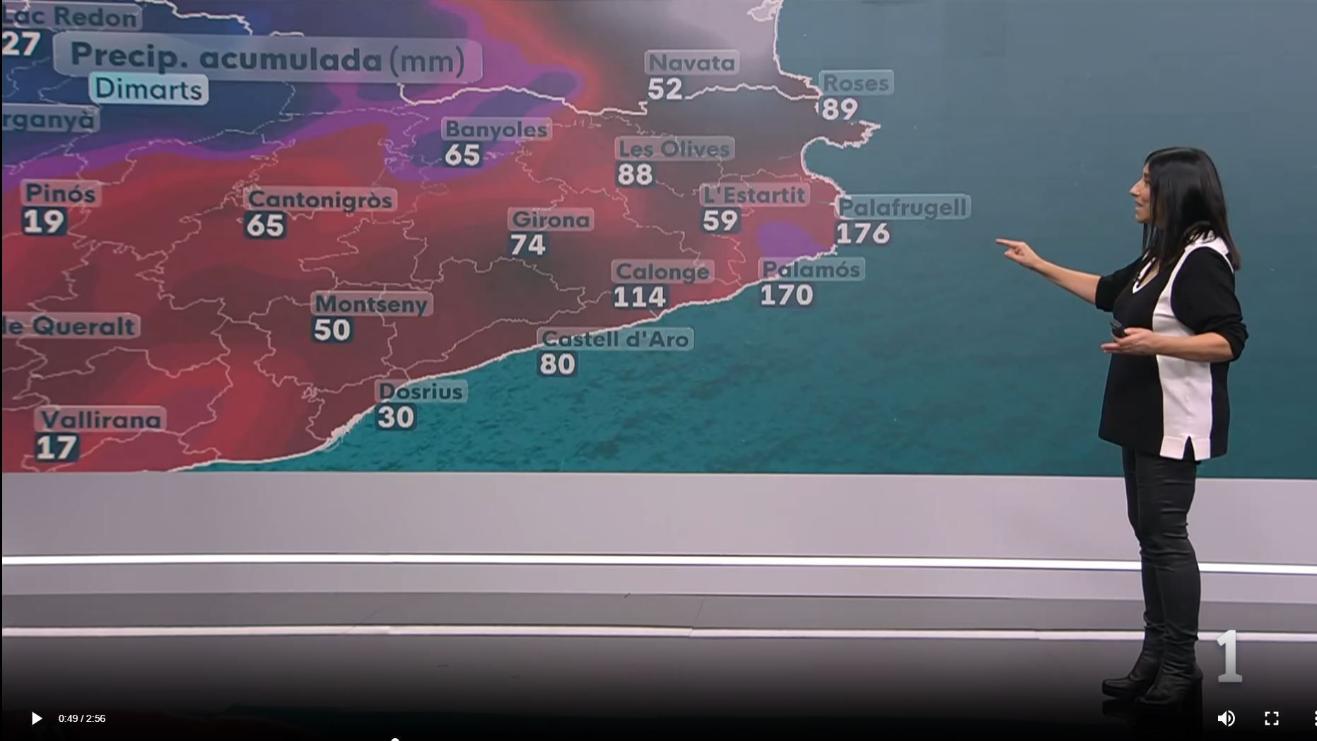 20/01/2026 00:02:56Cinquè dia de precipitacions... i segon dia de temporal de llevant que avui ens porta onades de 3 a 6 metres a bona part de la costa. Ara bé, mar endins, la boia del Cap de Begur ha registrat una onada de més de 10 metres d’alçada. Un temporal de llevant que també ens porta ventades fortes, molta pluja i neu al Pirineu, sobretot cara sud i al sector Oriental de la serralada. I és que de matinada ha arribat una nova tongada de precipitacions intenses i abundants per les comarques gironines que lentament s’ha anat estenent per la resta del territori. En general s’acumulen quantitats moderades de precipitació, però a punts de l’Alt i Baix Empordà, La Selva i el Gironès, fins a migdia els registres rondaven entre 50 i més de 200 litres per metre quadrat. Una bona ploguda que s’afegeix a la caiguda durant el cap de setmana. Per tant avui en aquestes comarques del nord-est de Catalunya tenim acumulacions de 100 a més de 200 litres. Molta pluja que cau sobre un terreny molt saturat d’aigua i que provoca l’augment de cabal de molts rius, rieres i torrents. Fins a mitja tarda continuarà plovent arreu del territori... a partir del vespre, la pluja més intensa i abundant anirà quedant concentrada a les comarques de l’oest i del sud. Continuarà nevant al Pirineu i la cota es mantindrà al voltant de 1400 metres. El vent de component est continuarà bufant a ratxes de 60-90 km/h. Començarà a afluixar durant la nit. Vent for que mantindrà el temporal de mar amb onades de 3 a 6 metres a tota la costa. Hi ha avisos activats a l’Empordà, Gironès i la Selva per acumulacions de 120 a més de 180 litres per metre quadrat. Però també hi ha avisos per intensitat i per acumulació de pluja a tot el litoral i prelitoral, per neu i allaus al Pirineu, per vent i per mala mar.
