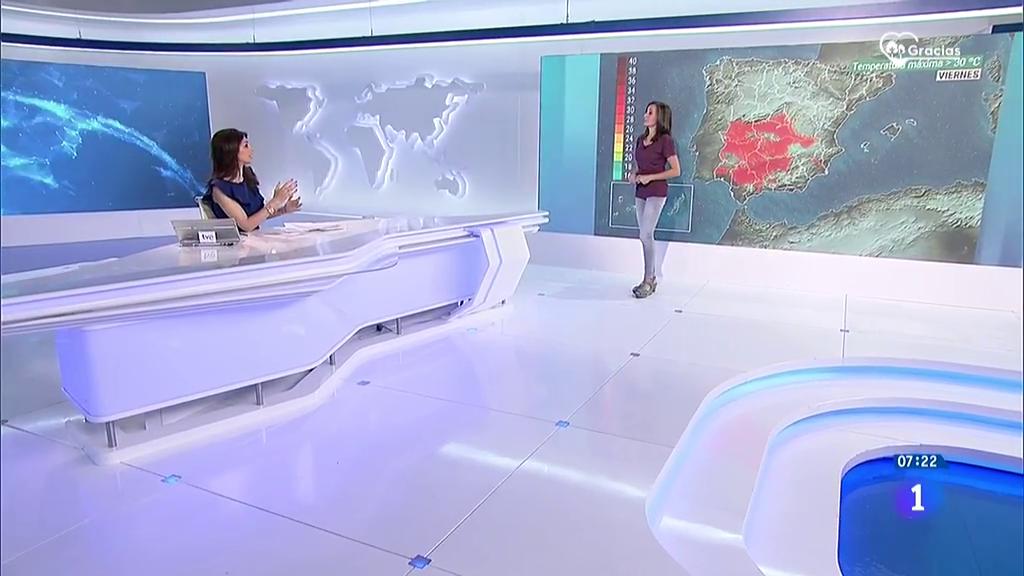 La Agencia Estatal de Meteorología prevé para este viernes, un ascenso de las temperaturas diurnas en la mayor parte de la Península, aunque habrá un descenso en el litoral andaluz, extremo sureste peninsular y Baleares. Se espera cielo nuboso con chubascos y tormentas en el entorno de la Comunidad Valenciana, Baleares y Pirineos, más frecuentes durante la mañana en litorales y por la tarde en el interior, que serán localmente fuertes en el Pirineo catalán, sur del sistema Ibérico y Mallorca; intervalos nubosos con chubascos y tormentas ocasionales en el sureste peninsular y Melilla. En el resto de la Península, habrá cielo poco nublado con nubes de evolución en gran parte del interior con algún chubasco aislado en el interior del Cantábrico, norte de Navarra y otras zonas del tercio oriental; cielo nuboso en el norte de Canarias, con lluvias débiles dispersas en las islas de más relieve y con intervalos nubosos en el resto.