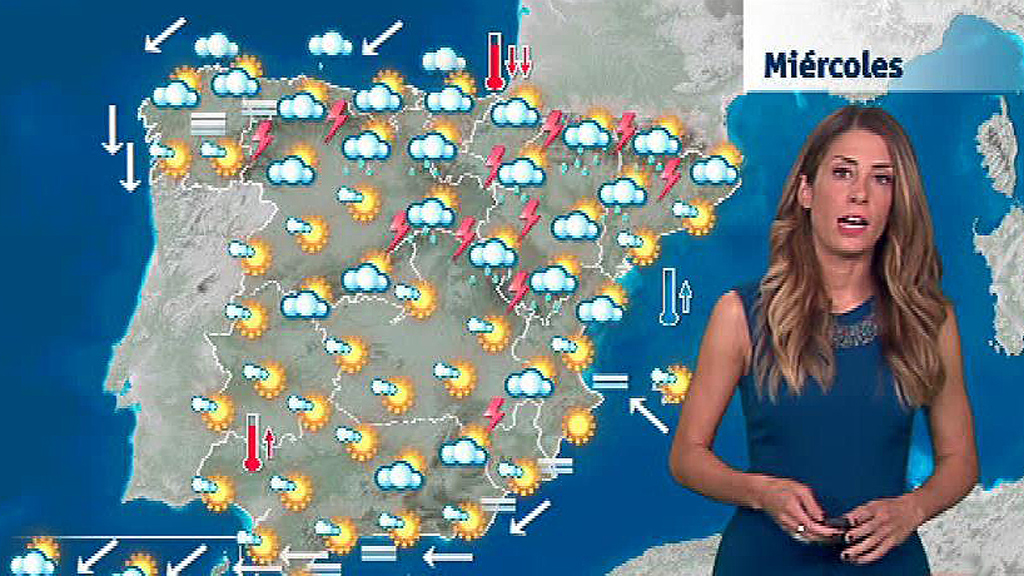 Miércoles de calor en el centro y sur peninsular y en el sur de Canarias, temperaturas más suaves en el norte y tormentas en el nordeste. Un frente...