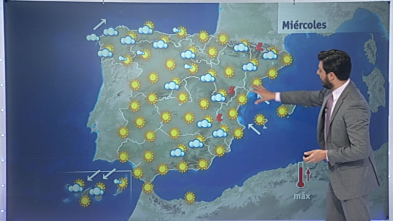 06/08/2014 00:06:45La Agencia Estatal de Meteorología (AEMET) prevé para mañana posibles chubascos o tormentas localmente fuertes en el entorno del pirineo oriental. Estará nuboso o muy nuboso en Galicia, con posibles precipitaciones débiles. Intervalos nubosos en el resto del tercio norte y de evolución diurna en las sierras de la mitad este, con posibilidad de chubascos y tormentas, por la tarde, en el área cantábrica, sur de la Cordillera Ibérica y entorno de Pirineos, donde serán más probables, pudiendo alcanzar intensidad fuerte en su parte oriental. Nuboso o muy nuboso en el norte de Canarias y predominio de poco nuboso en el resto del país, con algunos intervalos nubosos matinales en los litorales de levante y del sudeste de la Península. Las temperaturas diurnas en ligero a moderado descenso en buena parte de Canarias y en ascenso en el litoral mediterráneo andaluz y sudeste de la Península. Las nocturnas, en ligero a moderado ascenso en el tercio norte peninsular y con pocos cambios en el resto. El viento del noreste moderado a fuerte en Canarias; suroeste moderado en el litoral gallego y del oeste en El Estrecho, tendiendo a disminuir; predominio de flojo en el resto, con intervalos moderados de componente este en el Mediterráneo.