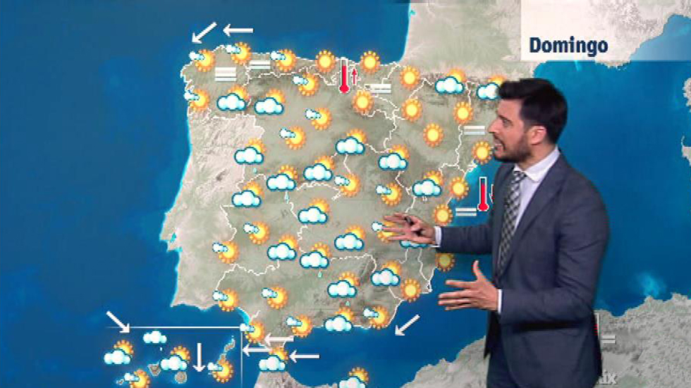La Agencia Estatal de Meteorología (Aemet) prevé para hoy, domingo, temperaturas significativamente altas en buena parte del interior de la Península, especialmente en valles del Guadalquivir, Guadiana y Tajo. Las temperaturas continuarán con valores muy por encima de los normales para ésta época del año en el Cantábrico occidental, la vertiente atlántica (37/40 grados), y el valle del Ebro (39/42). Temperaturas diurnas irán en aumento en el norte de Galicia, Cantábrico, alto Ebro y Navarra, y en descenso en el área mediterránea peninsular y sur de Huelva. Nubosidad en el sistema central, Extremadura, oeste de Castilla-La Mancha y Andalucía, con probabilidad de chubascos dispersos o tormentas. En el resto de la península cielos poco nubosos o despejados. En Canarias, intervalos nubosos en el norte, sin descartar alguna precipitación ocasional por la mañana en las de más relieve y poco nuboso o despejado en el resto. Soplará viento de componente norte en Ampurdán y Menorca, de componentes norte y este en el litoral cantábrico y el norte de Galicia. De componente este en el corredor mediterráneo, con intervalos de fuerte en el Estrecho.