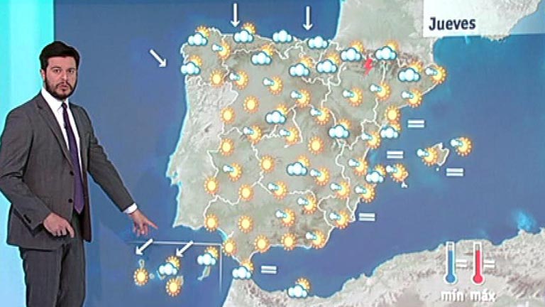 Las nubes son este jueves densas en el tercio norte peninsular y en parte de la costa mediterránea, y se registrarán tormentas en Pirineos y...