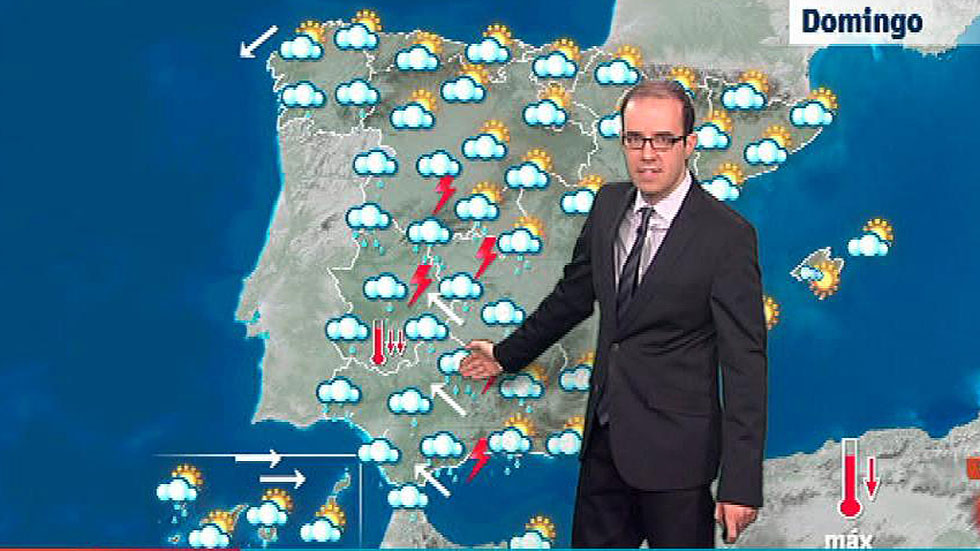 La Agencia Estatal de Meteorología (Aemet) prevé para este domingo precipitaciones localmente muy fuertes o persistentes en la mitad oeste de Andalucía, Extremadura y en el extremo suroeste de Castilla y León. Estas precipitaciones podrían extenderse, de forma más débil y dispersa, a otras zonas de la Península y las Baleares donde predominaran los intervalos nubosos. En las Islas Canarias habrá intervalos de cielo nuboso con lluvias y chubascos. Las temperaturas diurnas descenderán en la mitad oeste peninsular, subirán en la Comunidad Valenciana y Cataluña y seguirán con pocos cambios en el resto del país; las nocturnas ascenderán en la mitad norte peninsular con especial incidencia en áreas del Cantábrico oriental y alto Ebro. El viento soplará de componente este en Galicia, en el Estrecho, y en los litorales del sureste peninsular y de las Baleares, de componente sur en Extremadura y Andalucía occidental, flojo variable en el resto de la Península y en las Canarias, viento de componente Oeste con algunos intervalos de fuerte.