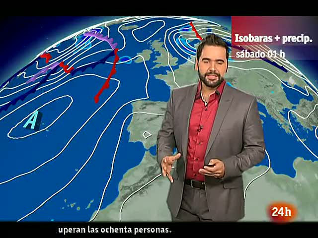 23/07/2011 00:02:01La Agencia Estatal de Meteorología (Aemet) prevé para este sábado, intervalos de viento fuerte en el Valle del Ebro y este de Gerona. Muy nuboso en el cantábrico oriental y norte de Navarra, con lluvias débiles, que se podrían extender, de forma más débil y dispersa, a otros puntos del área cantábrica y Pirineos. Intervalos nubosos en el área mediterránea y oeste de Andalucía, con chubascos débiles o moderados en el este de Cataluña, y posibilidad de alguno débil y aislado en la zona de Levante y Baleares.Poco nuboso o despejado en el resto de la península, aunque habrá algo de nubosidad de evolución por la tarde en las montañas del este y sureste, donde es posible algún chubasco o tormenta débil o localmente moderada. En Canarias, intervalos nubosos en el norte de las islas, y poco nuboso en el sur. Posibles bancos de niebla en el interior de Galicia y litoral de Andalucía. Temperaturas con pocos cambios. Viento flojo a moderado de componente norte en el tercio norte peninsular y Canarias, con intervalos de fuerte en el Valle del Ebro y este de Gerona. Flojo a moderado del oeste en el sur de Andalucía, y flojo variable en el resto.