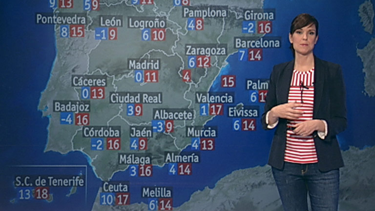 En Canarias, chubascos débiles o localmente moderados en las islas mas occidentales, que también son posibles en el resto, y que tenderán a remitir. Poco nuboso en el resto de la Península, con intervalos nubosos al principio en otras zonas de la mitad norte.