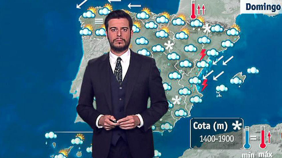 La cota de nieve se situará en la península en 1.600/1.800 metros. Temperaturas en ascenso en la mitad norte peninsular, y con pocos cambios en el resto. Vientos de componente este en península y en Baleares, con algún intervalo fuerte de dirección variable en el entorno del estrecho, y en Canarias vientos del noroeste.