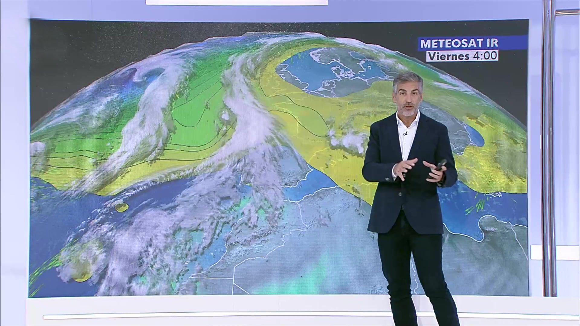 08/11/2024 00:12:46Se prevé la entrada de un frente atlántico por el oeste peninsular, con aumento de nubosidad y precipitaciones en Galicia y Cantábrico occidental, sin descartar otras zonas del tercio noroeste, más abundantes en el noroeste de Galicia. Asimismo, persistirá la posibilidad de chubascos en el Estrecho y área mediterránea oriental que, a primeras horas, pueden ir acompañados de tormenta en el este de Baleares y, pudiendo ser localmente fuertes, en el nordeste de Cataluña.