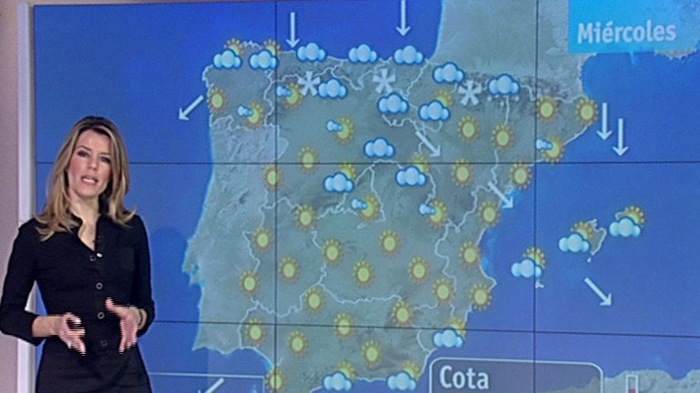 15/02/2012 00:02:29La Agencia Estatal de Meteorología (Aemet) prevé para este miércoles nevadas débiles en el extremo norte peninsular, e intervalos de viento fuerte en el Estrecho, el nordeste de Gerona, Menorca y Canarias. Habrá heladas débiles o moderadas en el interior de la Península y Baleares.Estará muy nuboso en el Cantábrico, alto Ebro y Pirineo occidental, con precipitaciones en general débiles. Intervalos nubosos en el resto del extremo norte peninsular, Castilla y León, y áreas de los sistemas Central e Ibérico. En el litoral del sureste peninsular, área del Estrecho, Melilla y Baleares, intervalos nubosos con posibilidad de alguna precipitación débil al principio, tendiendo a poco nuboso. Poco nuboso o despejado en el resto de la Península. En el norte de las islas Canarias occidentales, nuboso o muy nuboso con probables lluvias débiles. En el resto de Canarias intervalos nubosos con posibilidad de alguna lluvia débil. Cota de nieve: entre 400 y 900 metros en la Península y Baleares. Temperaturas diurnas en ligero a moderado ascenso en el Cantábrico oriental, Pirineos, y Baleares, y con pocos cambios el resto. Las mínimas en ligero a moderado ascenso en el extremo suroeste peninsular, y en ligero a moderado descenso en áreas del este de la Península. Heladas débiles localmente moderadas en el interior de la Península y Baleares. Vientos flojos a moderados del este en el litoral de Andalucía oriental y Melilla, y con intervalos de fuerte en el Estrecho. Flojos a moderados de componente norte en el resto del país, con intervalos de fuerte en el nordeste de Gerona y Menorca.