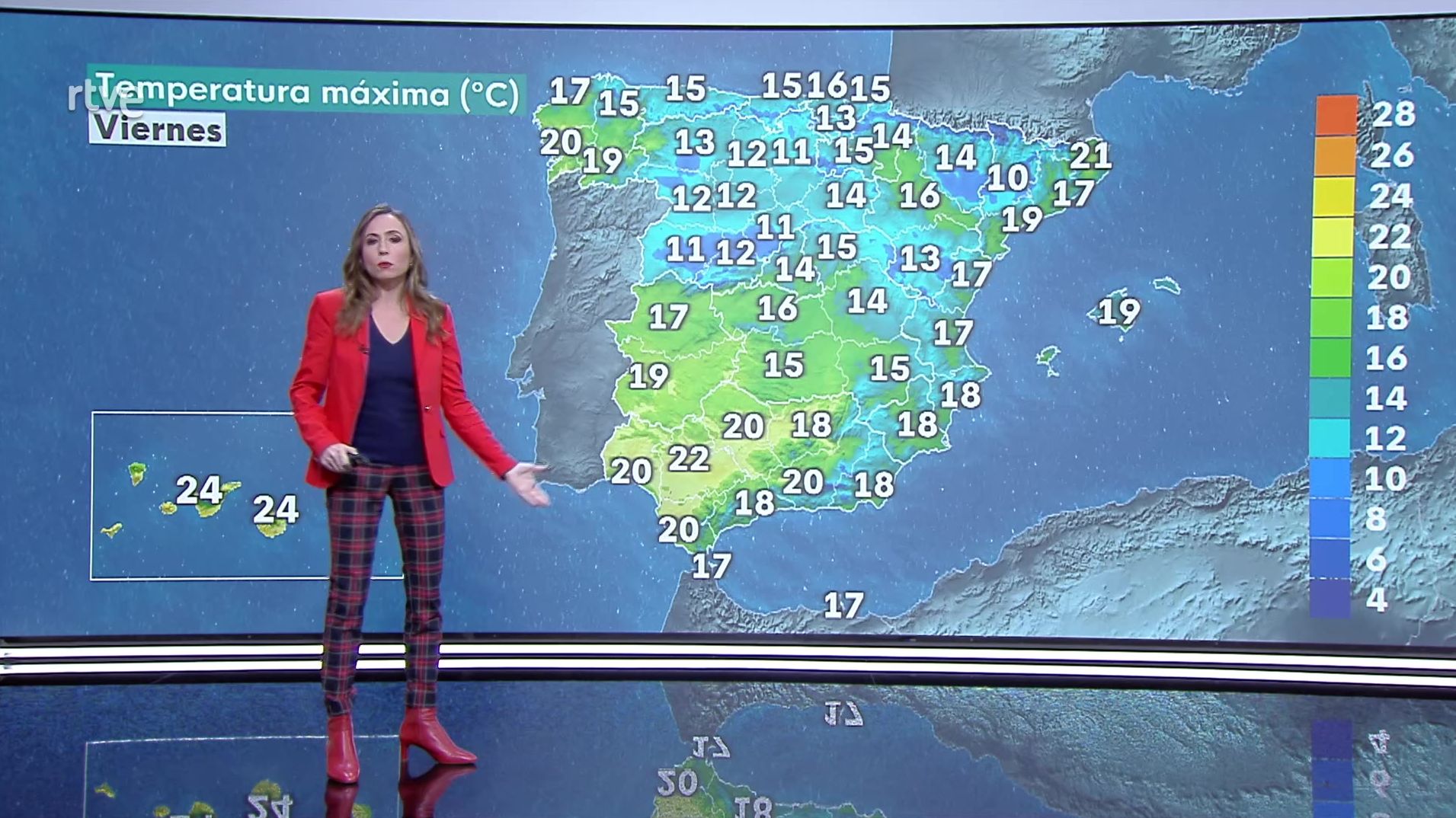 Temperaturas máximas en descenso en el extremo norte peninsular, en ascenso en zonas de la mitad este, y con pocos cambios en el resto, al igual que las mínimas. Las heladas quedarán restringidas a Pirineos y, de forma dispersa, a otras zonas de montaña de la mitad norte peninsular.