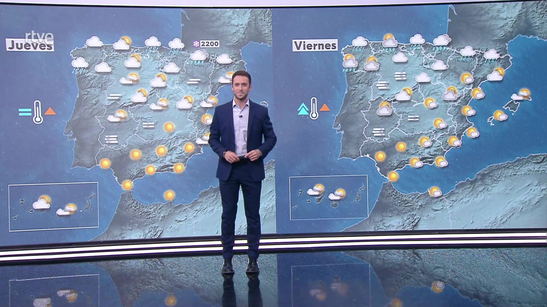 Las temperaturas máximas tenderán a descender, notablemente en el Cantábrico, y con aumentos en la fachada oriental y Baleares. Las mínimas descenderán en Canarias, Cantábrico y tercio oeste, con pocos cambios en el resto. Heladas débiles en montañas del extremo norte.