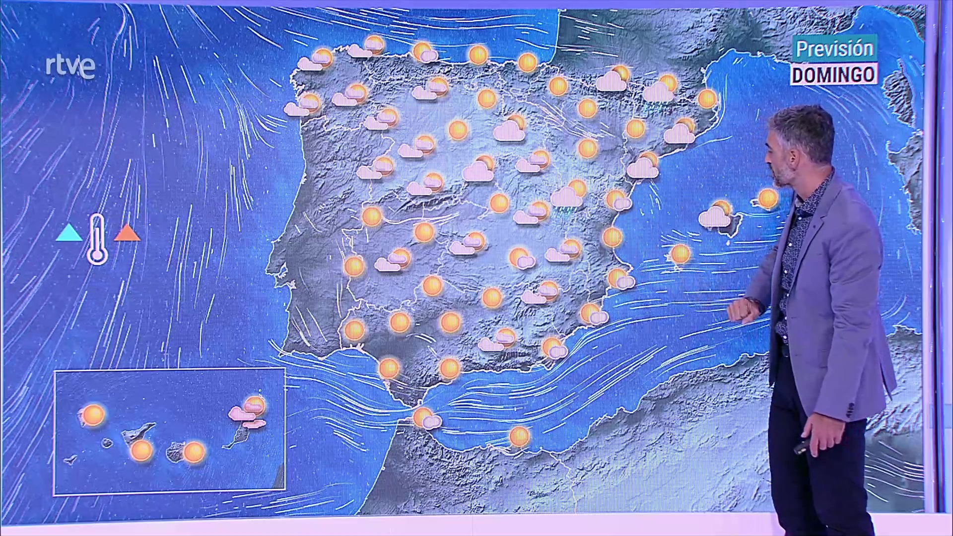 Predominarán los vientos flojos en la Península, algo más intensos y de componente norte al principio en Baleares. Alisios en Canarias.