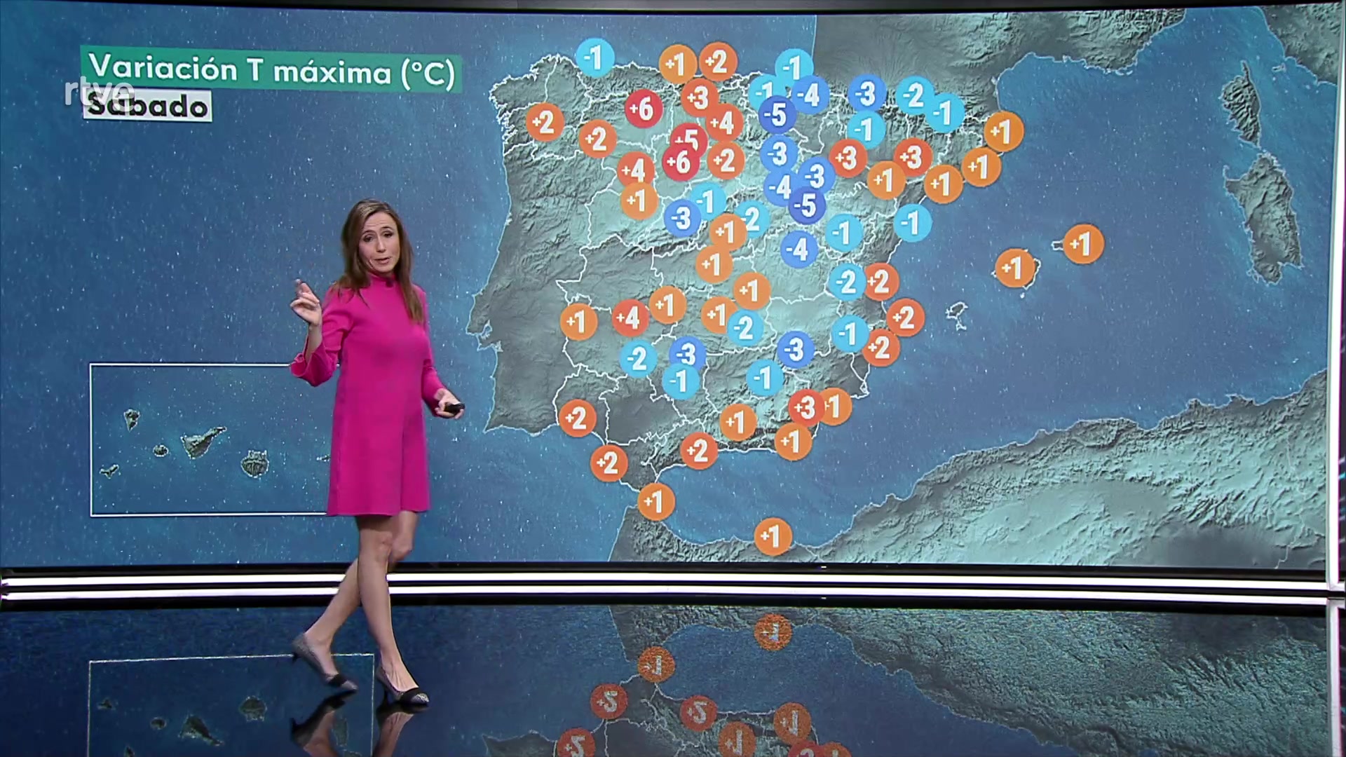Temperaturas diurnas en descenso en zonas del tercio norte peninsular, y con pocos cambios en el resto. Habrá heladas débiles en ambas mesetas, así como en el sistema Ibérico y en las montañas del sureste peninsular. Serán algo más intensas en Pirineos.