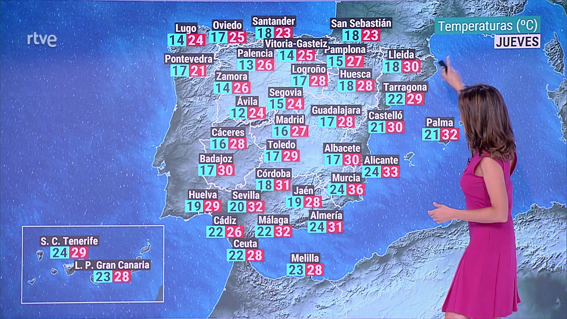 Temperaturas máximas altas en puntos de Canarias. No se descarta alguna tormenta fuerte en el Pirineo central y oriental