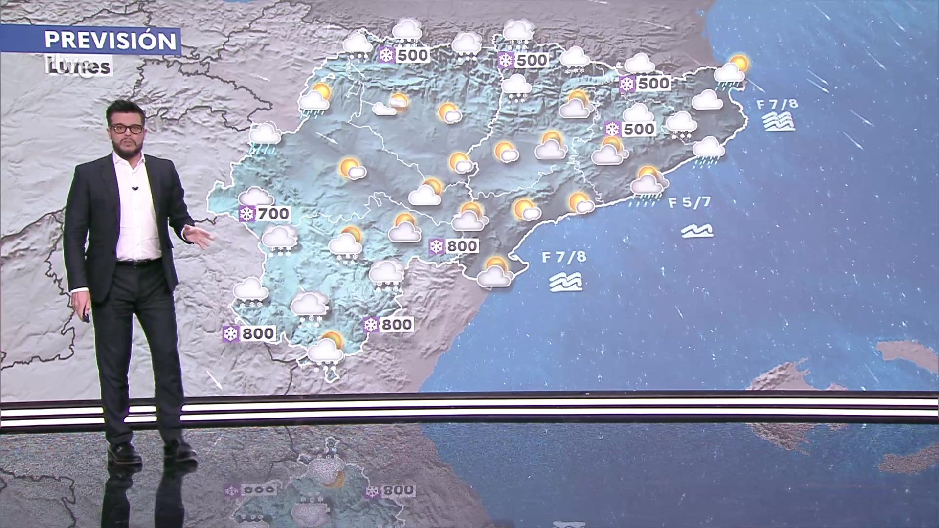 08/12/2024 00:07:02Durante este día la profundización de la borrasca Darragh sobre Europa central, unida al posicionamiento de un anticiclón sobre el Atlántico norte, favorecerá la entrada de una masa de aire ártica sobre la Península y Baleares, dejando abundante nubosidad y precipitaciones que afectarán a la mayor parte de la mitad norte peninsular y Baleares. Se prevén más abundantes, pudiendo llegar a persistentes en el Cantábrico oriental y Pirineos. Sin embargo, será la nieve el fenómeno más significativo del día. Así se esperan nevadas moderadas y localmente fuertes en amplias zonas de la mitad norte peninsular, con una cota de 700/900 m en el nordeste y de 800/1000 m en el resto de la mitad norte. Se prevén acumulados significativos en interiores del extremo norte, especialmente en Pirineos y cordillera Cantábrica. En la mitad sur peninsular predominarán los cielos poco nubosos, si bien son probables los chubascos en Alborán. Cielos nubosos en los nortes de Canarias con probables precipitaciones débiles en las islas de mayor relieve e intervalos nubosos en el resto.