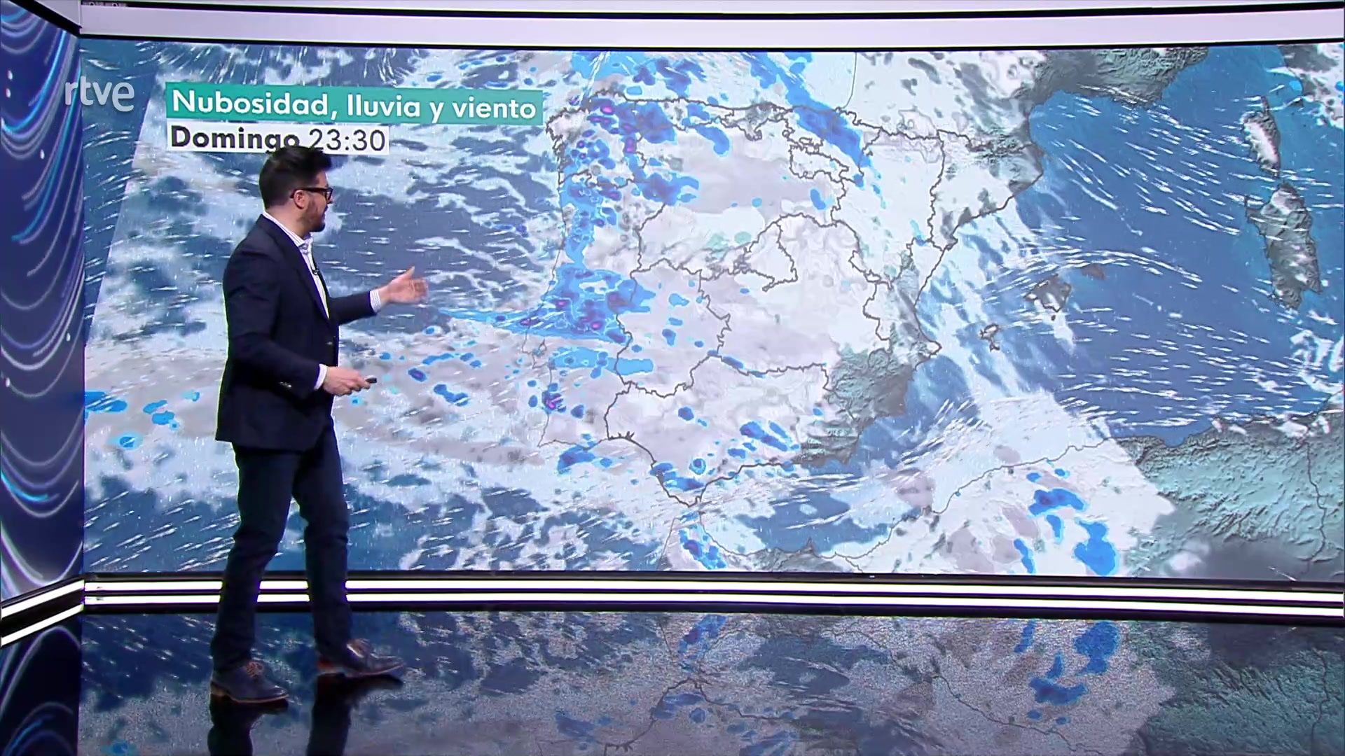 Vientos moderados de componente oeste en la mayor parte del país, con intervalos de fuerte y/o rachas muy fuertes en Canarias, costas de Galicia y Cantábrico, área mediterránea y montaña de la mitad norte y tercio oriental peninsulares.