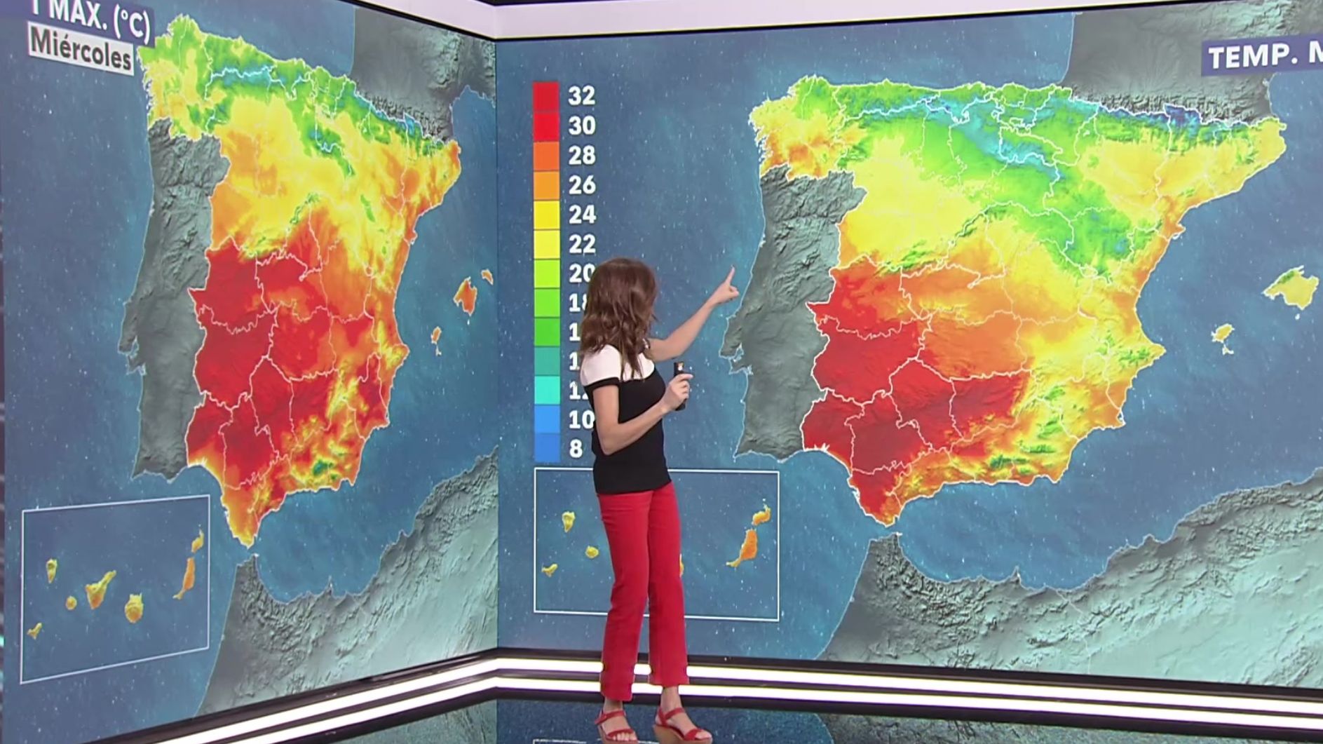 En la mayor parte del país predominarán los descensos térmicos, más acusados en el interior de las islas Canarias montañosas, y en el norte de Huesca y de Cataluña. Por el contrario, ascenderán ligeramente en el suroeste peninsular y área cantábrica. Las temperaturas quedarán por debajo de valores normales para la época en zonas del interior del tercio norte y del este de Canarias.