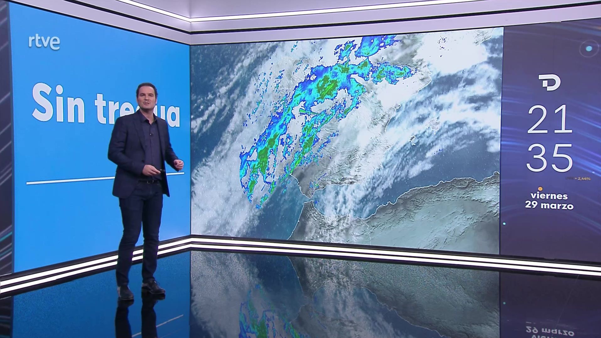 29/03/2024 00:06:13Se prevé que la Península siga afectada por la borrasca Nelson con frentes atlánticos, cielos nubosos o cubiertos y precipitaciones casi generalizadas, ocasionalmente acompañadas de tormentas. En el extremo oriental peninsular son menos probables y se darían de modo débil, disperso y acompañadas de barro, mientras que en Baleares no se esperan. Las precipitaciones serán más abundantes en el cuadrante suroeste peninsular, Aragón y Pirineos, donde pueden ser localmente fuertes y persistentes. En Canarias, un frente atlántico dejará cielos nubosos y precipitaciones, que podrán ser localmente fuertes en la mitad occidental del archipiélago, y menos probables en las islas orientales.