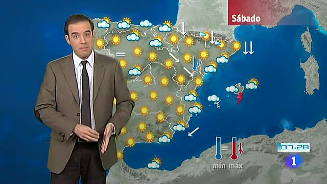 11/02/2012 00:01:07La Agencia Estatal de Meteorología (Aemet) prevé para hoy, sábado, temperaturas bajas en la península y Baleares, con heladas fuertes en zonas montañosas de la mitad norte, nevadas en la comunidad balear y viento fuerte en zonas del nordeste de la península. Nuboso o con intervalos nubosos en el Cantábrico, con posibilidad de alguna lluvia débil, dispersa y ocasional. Nuboso o muy nuboso en Baleares, con chubascos débiles, localmente moderados y con alguna tormenta, con posibilidad de que también se den, de forma más débil y ocasional en puntos del litoral mediterráneo. Nuboso en Canarias, con probables lluvias débiles en las islas de más relieve. Predominio de poco nuboso en el resto de la península, con intervalos nubosos en el norte y este de Castilla y León. Cota de nieve entre 0 y 200 metros en el Cantábrico, costa catalana y Baleares. Temperaturas en ligero a moderado descenso en Baleares y en la mayor parte de la península, excepto en el suroeste. Heladas débiles o moderadas en el interior de la península y Baleares, localmente fuertes en zonas montañosas de la mitad norte. Vientos flojos a moderados del oeste en el Estrecho y Melilla, y de componente norte en el resto del país, con intervalos de fuerte en el litoral norte de Galicia y en zonas del nordeste de la península y Baleares, con rachas muy fuertes en el nordeste de Gerona.