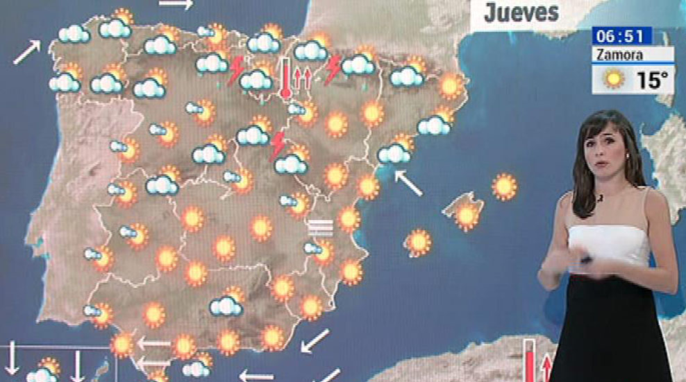 Las temperaturas en aumento en general en la península y Baleares, notable en el Cantábrico oriental, alto Ebro y Pirineos; es probable que se superen los 36 grados en los valles del Tajo, Guadiana y Guadalquivir, y los 30 en el Duero, Ebro y Cantábrico oriental.