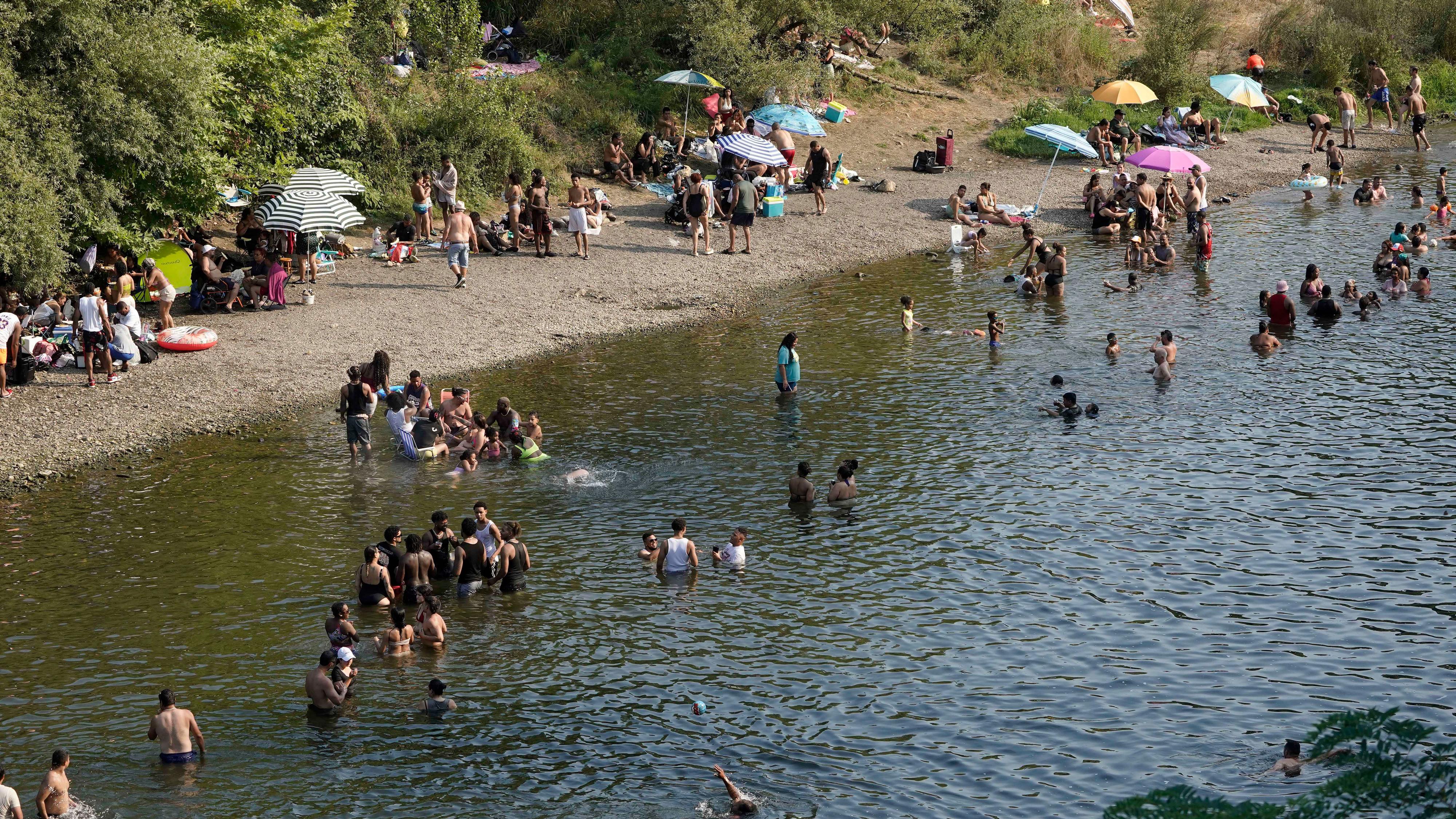 Foto: Bañistas a orillas del Río Nalón. EFE/Paco Paredes