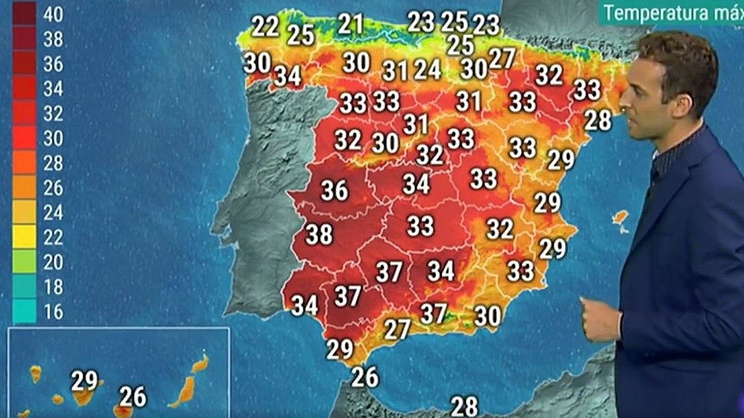 Para este sábado, bajan las temperaturas en el norte (21ºC se esperan en Oviedo, 25 en Bilbao) mientras la mayor parte del Mediterráneo seguirá con temperaturas en torno a los 30ºC. Se esperan lluvias en el Cantábrico y nubosidad en Baleares.