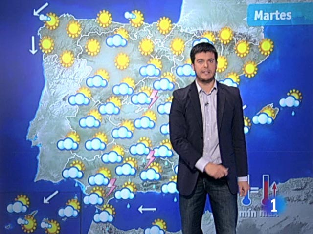 16/08/2010 00:08:22La Agencia Estatal de Meteorología prevé para mañana martes chubascos y tormentas localmente fuertes en Melilla, Andalucía oriental y área del Estrecho. Con menor probabilidad e intensidad podrían darse también en el resto de la mitad sur, zona centro y sur de Cataluña, siendo menos probables cuanto más al norte y al oeste. En el noroeste peninsular, aumento de la nubosidad en la segunda mitad del día, con posibilidad de lluvias débiles al final en el noroeste de Galicia. En el resto de la Península, predominio de cielo poco nuboso. En Baleares, se esperan lluvias débiles y dispersas. En Canarias, nuboso en el norte con posibilidad de algún chubasco a primeras horas e intervalos nubosos en el resto. Brumas y bancos de niebla matinales en el cantábrico. En Baleares y Canarias, temperaturas con pocos cambios. En la Península, mínimas en ligero ascenso en áreas de la mitad norte y zona centro y con pocos cambios en el resto; máximas en ligero a moderado ascenso en la mitad norte, en ligero descenso en Andalucía y sin cambios en el resto.