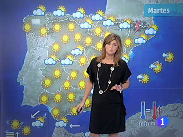 09/08/2010 00:10:28La Agencia Estatal de Meteorología prevé para mañana martes temperaturas significativamente altas en áreas del sur y suroeste peninsular. En el tercio este peninsular, intervalos nubosos con chubascos débiles ocasionalmente moderados y tormentosos, más probables por la tarde y en áreas del interior. En el resto del extremo norte peninsular, intervalos nubosos. En el resto de la Península, en Baleares, Ceuta y Melilla predominio de poco nuboso. En Canarias, intervalos nubosos en las islas orientales y poco nuboso en las occidentales. Bancos de niebla matinales en Galicia y Asturias. Temperaturas diurnas en ligero a moderado ascenso, excepto en el tercio norte y área mediterránea, donde habrá pocos cambios. Nocturnas en ligero a moderado descenso en el cuadrante noroeste y cuenca del Ebro, ligero a moderado ascenso en Canarias y sin cambios en el resto.