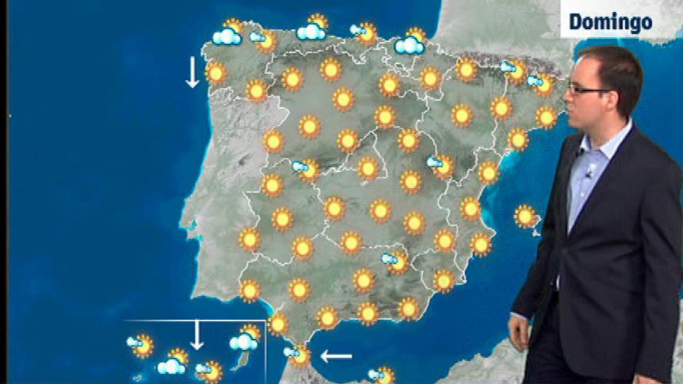 La Agencia Estatal de Meteorología (Aemet) prevé para hoy, domingo, calor extremo en doce comunidades autónomas, con temperaturas por encima de los 40 grados en Madrid, zonas de Andalucía y de Castilla-La Mancha y en Murcia. En Madrid, las temperaturas máximas superarán los umbrales del aviso amarillo (riesgo por calor) en la sierra por debajo de los 1.100 metros, y en el resto de la comunidad se superarán los del aviso naranja (riesgo importante) por altas temperaturas. En Andalucía, se superarán los 36 grados en los litorales de Cádiz y Huelva, y en muchas zonas del interior, los 38 grados, mientras que se llegará a los 40 grados en comarcas de Córdoba, Sevilla, Jaén y Cádiz. En Castilla-La Mancha se superarán los umbrales del aviso amarillo en el sistema central, Parameras de Molina y Serranía de Cuenca. En el resto, se superaran los parámetros del aviso naranja, con riesgo importante por calor. En Murcia las temperaturas se situarán por encima de los 38 grados en el interior y alcanzarán los 40 grados en la Vega del Segura, y también en la Comunidad valenciana se registrarán temperaturas significativamente altas, incluso superiores a los 38 grados en puntos del interior. En Navarra, las máximas estarán por encima de los 36 grados en la Ribera del Ebro, y en Aragón, las diurnas superarán los 35 grados en numerosos lugares y rondarán los 39 en el Valle del Ebro. También en Cataluña se esperan temperaturas significativamente altas, sobre todo en el interior. También hará mucho calor en Extremadura, Baleares, La Rioja y Castilla y León. En Galicia se alcanzarán temperaturas máximas de 37 grados en puntos de Orense.