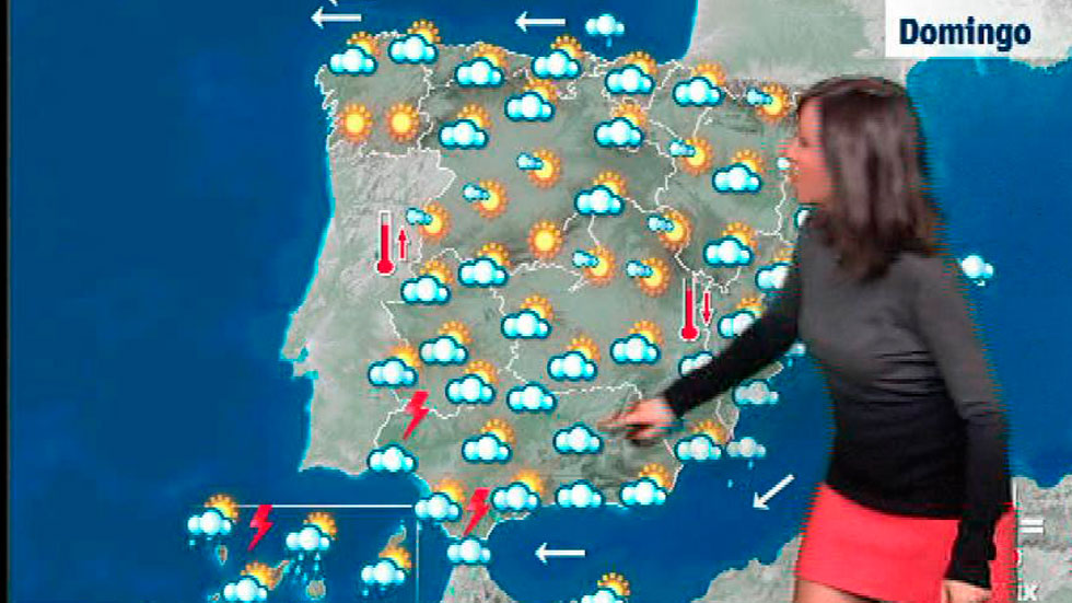 La Agencia Estatal de Meteorología (Aemet) prevé para hoy, domingo, cielos nubosos o cubiertos con precipitaciones en la mitad suroccidental peninsular, pudiendo ser más intensas o persistentes en el oeste de Galicia y extremo sudoeste de la Península. Se podrán extender hacia el este a lo largo del día de forma más débil y dispersa, menos probables y de forma ocasional en el Cantábrico oriental, Alto Ebro, Navarra, norte de Aragón, interior de Cataluña y Baleares. En Canarias se esperan chubascos de menor intensidad que en días anteriores. Temperaturas diurnas en ascenso en el área cantábrica, Estrecho y Melilla, en descenso en general en el resto de Península y con pocos cambios en los archipiélagos. Predominio del viento de componente sur en el tercio norte peninsular, con intervalos de intensidad fuerte en el litoral de Galicia en la primera mitad del día. Del este rolando a oeste en el litoral andaluz, de componente este en buena parte de Levante, y predominio de flojos en el resto.