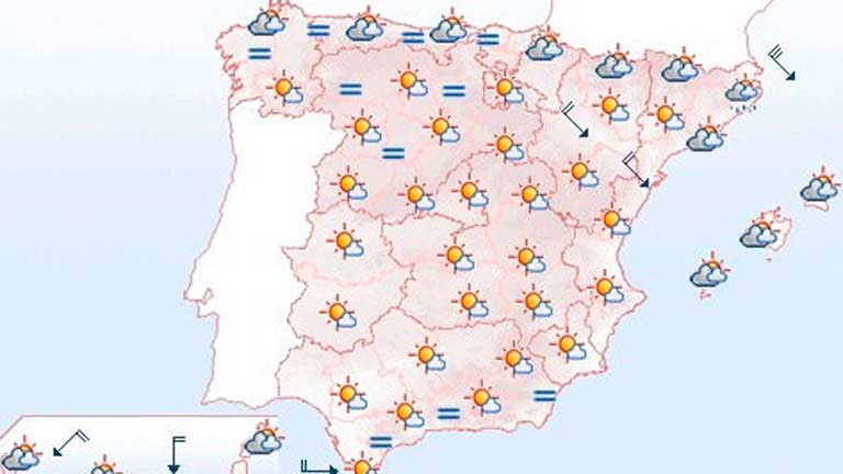 02/06/2012 00:06:24La Agencia Estatal de Meteorología (Aemet) prevé para hoy, sábado, chubascos o tormentas localmente fuertes en el Cantábrico, extremo noreste de Castilla y León, alto Ebro y Pirineo occidental. Habrá cielo poco nuboso aumentando a intervalos de nubes medias y altas en el litoral este peninsular y en el resto de la Península, aumento de la nubosidad de oeste a este hasta quedar muy nuboso con chubascos o tormentas débiles en la mitad norte peninsular. En forma localmente moderada serán probables en la segunda mitad del día en el este de Castilla-La Mancha y sierras del noroeste de Andalucía, y posibles en otros puntos de la meseta sur y serán localmente fuertes en el área cantábrica, extremo norte de Castilla y León, alto Ebro y norte de Aragón. Poco nuboso con nubes altas en Ceuta, Melilla, y Baleares, mientras que en Canarias habrá intervalos nubosos en el norte y poco nuboso en el sur. Las temperaturas en moderado a notable descenso en la mitad oeste peninsular y con pocos cambios en el resto. Los vientos serán flojos a moderados del norte en Canarias, del sur en el litoral este peninsular y las Baleares, y de componente oeste en el resto, con intervalos de fuerte en el litoral cantábrico oriental y en el Estrecho.