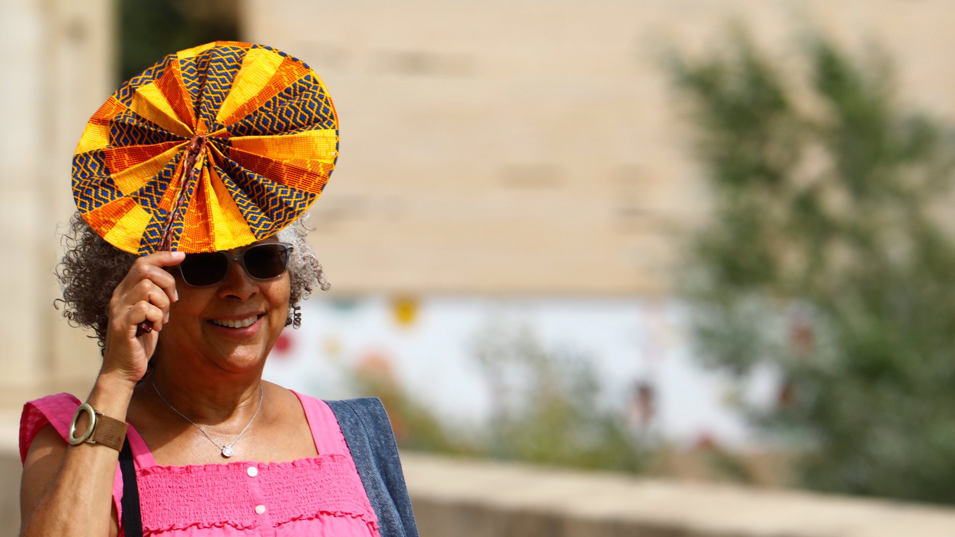 Foto: Una mujer se protege con un abanico del sol para aliviar el intenso calor mientras pasea por el puente romano de Córdoba durante una jornada de aviso amarillo con cielos cubiertos. EFE/ Salas