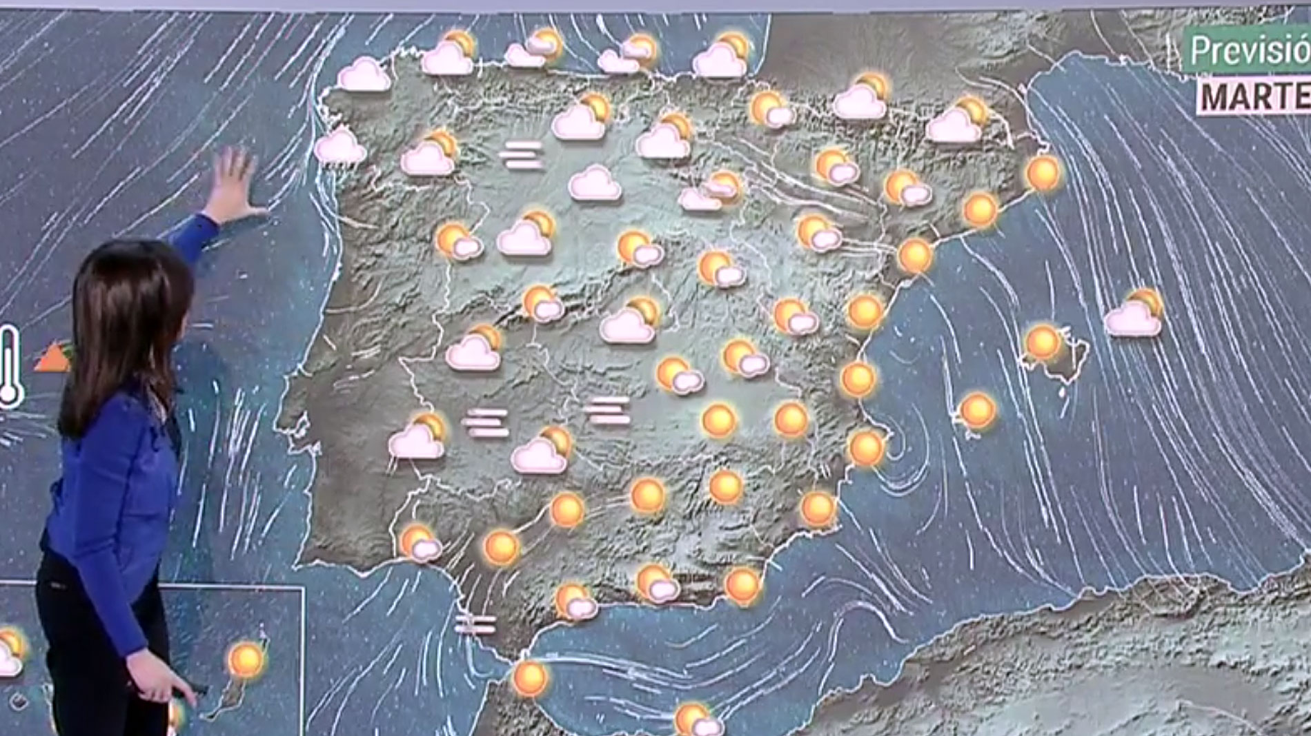 Toda la costa norte peninsular se mantendrá este martes bajo aviso amarillo o naranja por fuertes rachas de viento y mala mar que afectarán a Galicia, Asturias, Cantabria, País Vasco, Cataluña (Girona) e Islas Baleares (Menorca), en una nueva jornada marcada por la nubosidad y las brumas matinales. La Agencia Estatal de Meteorología (Aemet) prevé intervalos de viento fuerte y muy fuerte en zonas del tercio noreste peninsular, Baleares y Canarias, además de nieve en los Pirineos por encima de los 1.200 metros. El cielo estará nuboso o cubierto con precipitaciones en el Cantábrico oriental, el norte de Navarra y los Pirineos, y hay posibilidad de precipitaciones débiles en el resto del litoral cantábrico, Girona, el este de Baleares y el norte de las islas Canarias occidentales. En el interior, en amplias zonas de las dos meses y Extremadura se esperan nubes bajas y brumas matinales que se irán deshaciendo a medida que avance el día, mientras que los cielos estarán poco nubosos en general en el resto del país. La temperaturas diurnas descenderán en el extremo norte y caerán en el sudeste, mientras que las nocturnas se reducirán en el noroeste y se elevarán en la mitad sur, el valle del Ebro y Baleares.