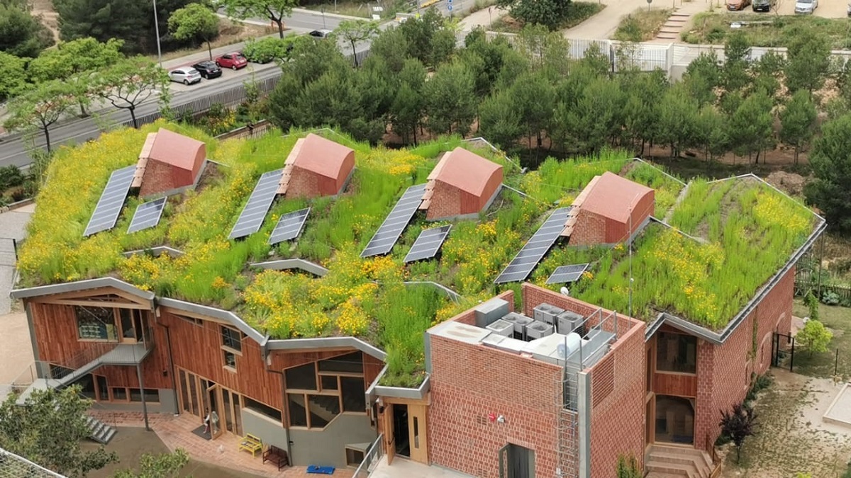 En la localidad valenciana de Paterna, todas las aulas de la escuela Imagine La Pinada están conectadas con la naturaleza mediante una fachada transparente desde la que se puede ver la pineda y pueda entrar luz natural. Todas las aulas dan acceso a jardines o a una terraza exterior. “Consideramos fundamental que se evoque el bienestar interior, la calidad del aire, que la sensación que tengan en cuanto a la conexión con la luz exterior sea muy potente.”, explica Mariano Pontón, director y socio fundador de la escuela. Su cubierta verde fomente la biodiversidad generando una contribución a los insectos locales, fauna y flora local.