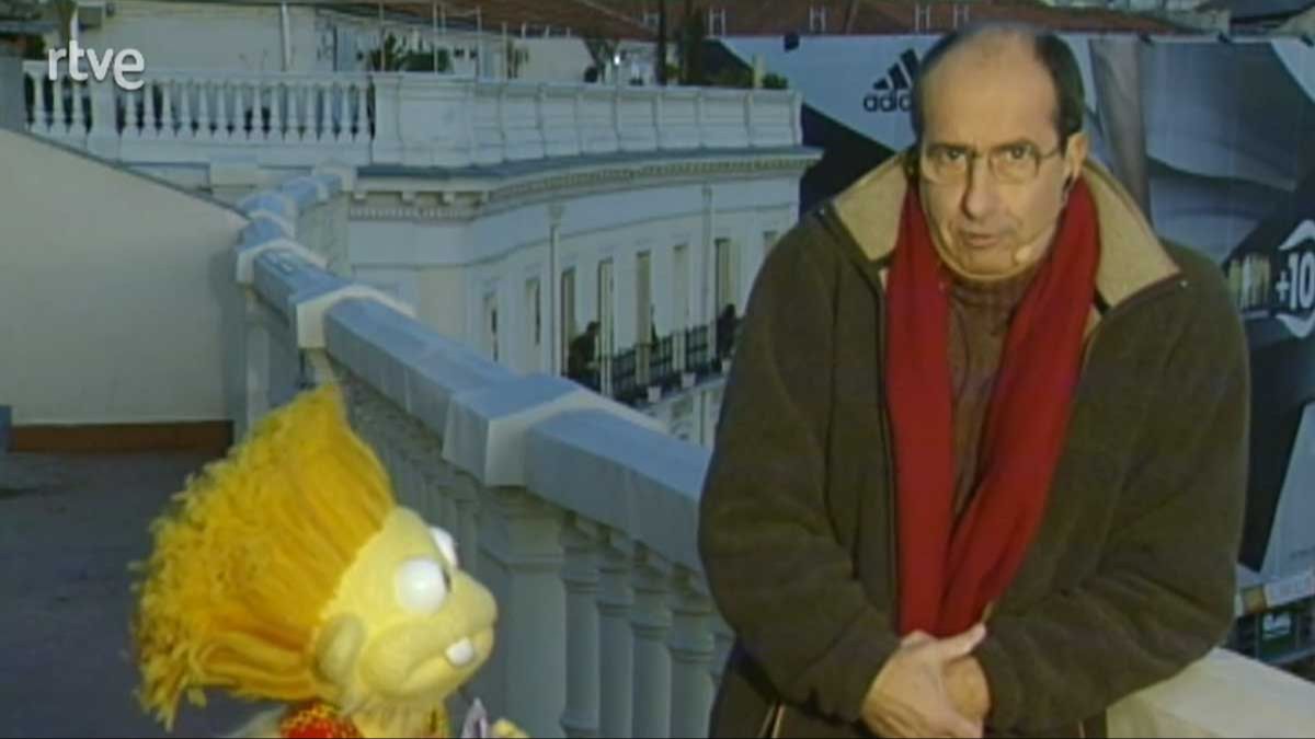 Retransmisión en directo de la Cabalgata de Reyes de Madrid, presentada desde una terraza por Fernando Argenta y Lucho de Los Lunnis.