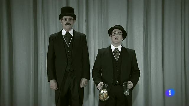 En una pequeña sala del hotel Tip y Coll rememoran uno de sus scketchs más famosos, "cómo llenar un vaso de agua".