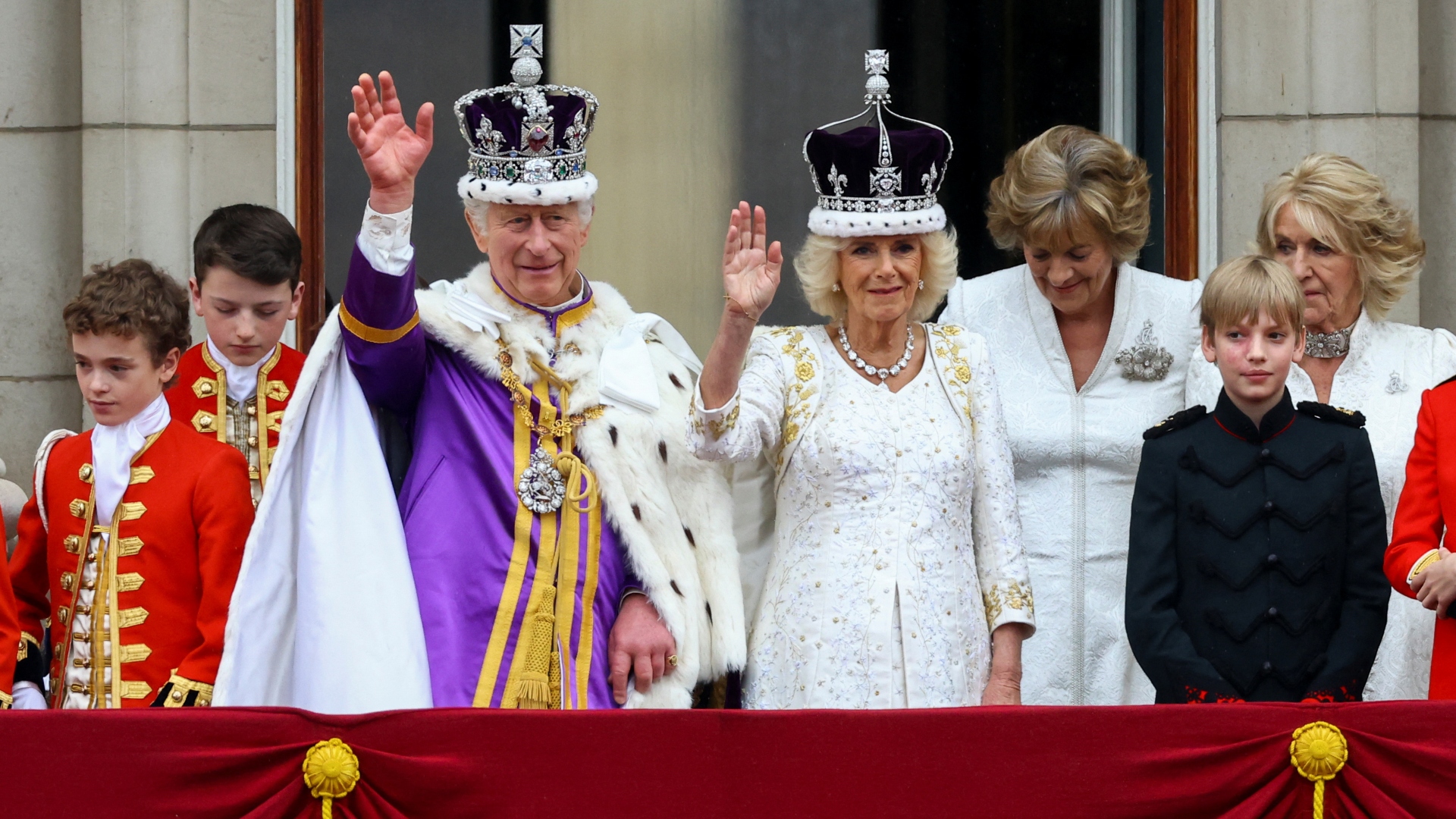 El rey Carlos III y Camila saludan a la multitud desde el balcón del Palacio de Buckingham
