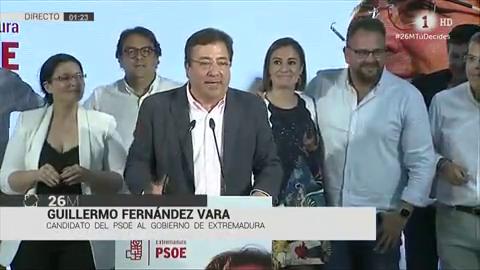 El candidato del PSOE a la reelección en Extremadura, Guillermo Fernández Vara, ha celebrado esta madrugada la mayoría absoluta que le han dado las...