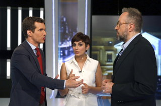 Seguidamente, Juan Carlos Girauta (C's) le pregunta al portavoz popular qué harían en el caso de que Unidos Podemos ganase las elecciones y fuese la lista más votada, a lo que Casado responde y se reaforima en que, "en ningún caso" dejarán que la formación de Pablo Iglesias gobierne.